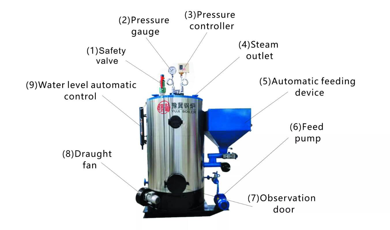 (2) Aparèy pwoteksyon sekirite: kontwolè presyon, transmetè presyon, valv sekirite, kalib presyon, kontwòl otomatik nivo dlo, elatriye.